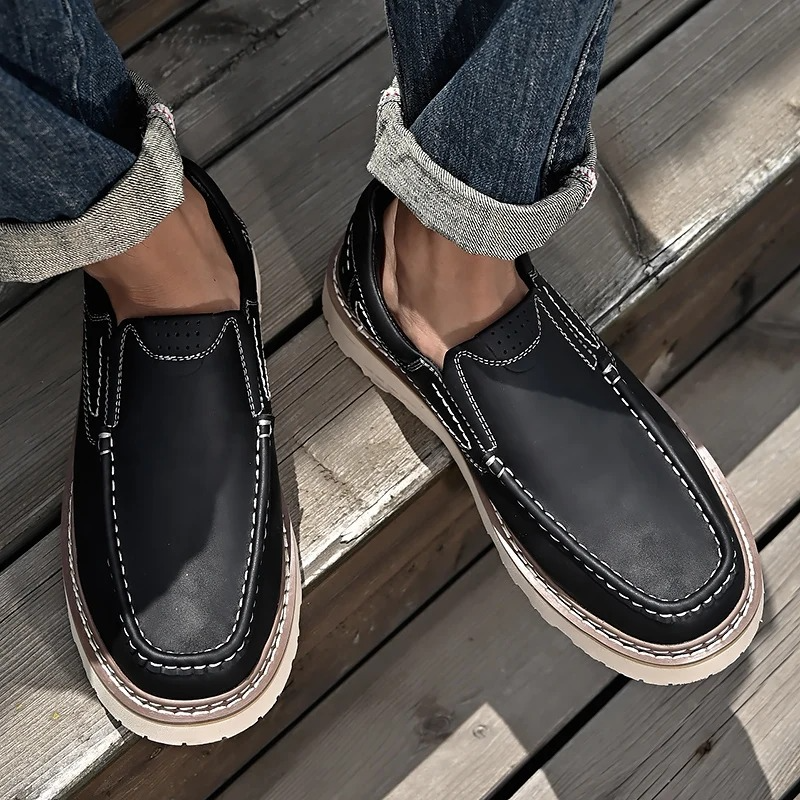 Featuring a convenient slip-on design and cushioned EVA insole, these shoes deliver soft support and easy wearability for all-day use. The durable rubber outsole ensures strong grip and stability on various surfaces, making them suitable for work and daily activities. With a true-to-size fit and high-quality craftsmanship, these shoes are ideal for men who want stylish, dependable footwear for both casual and business settings.